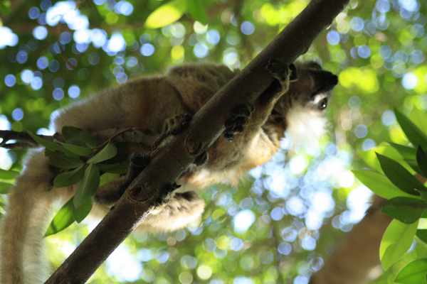 Première visite de l'arbre sacré où on est plongé dans un mix entre une forêt et la jungle. Il y a plein de lémuriens (qui ne sont pas des singes !). Si vous avez un guide avec vous (ce que je recommande dans ce pays) il apportera même des bananes pour les inciter à venir sur vous.