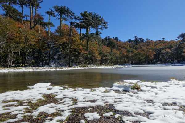 Parc national Huerquehue. Dans les hauteurs, les lacs gèlent