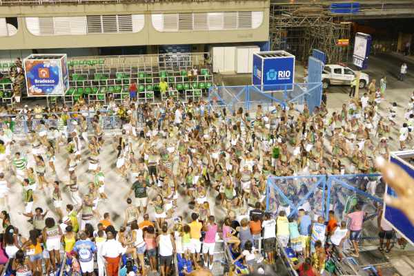 Le soir, nous traversons la ville à pieds jusqu’au sambodrome pour assister à une autre répétition in situ, tous le monde danse et chante en affichant les couleurs de l’école de samba de son quartier. Nous avons passé une soirée inoubliable!