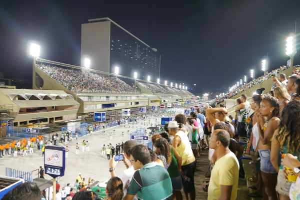 Le soir, nous traversons la ville à pieds jusqu’au sambodrome pour assister à une autre répétition in situ, tous le monde danse et chante en affichant les couleurs de l’école de samba de son quartier. Nous avons passé une soirée inoubliable!