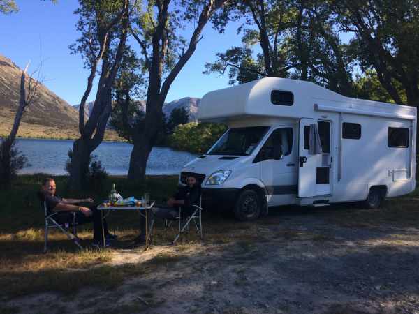 Petite grimpette pour voir une jolie cascade et nous nous posons en face d'un lac sur la Arthur's pass.